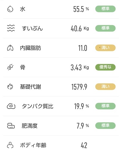 ・結果:7月末での体重、体脂肪率