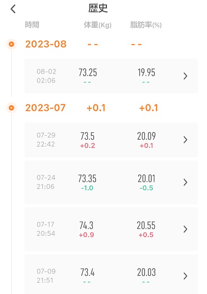 ・2023年7月の体重推移