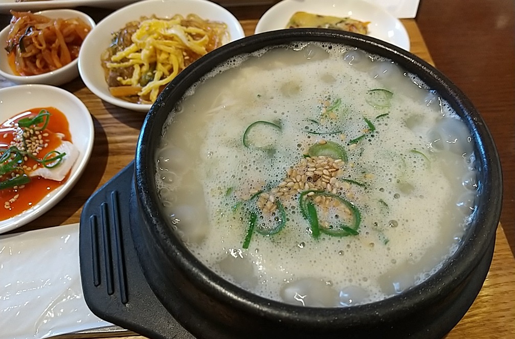 店内で少し待っておりますと、私のテーブルに下写真のような『サムゲタンスープ定食』が届きました。お盆の上に所狭しと並べられたおかず達とアツアツのサムゲタンスープの美味しそうな香りが漂ってきました。