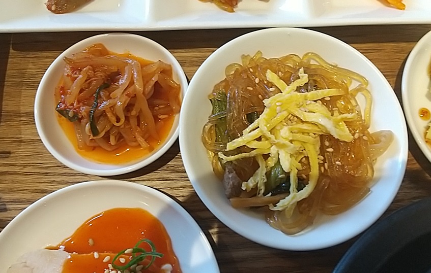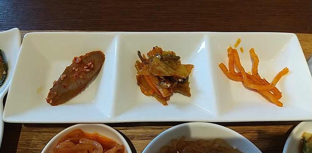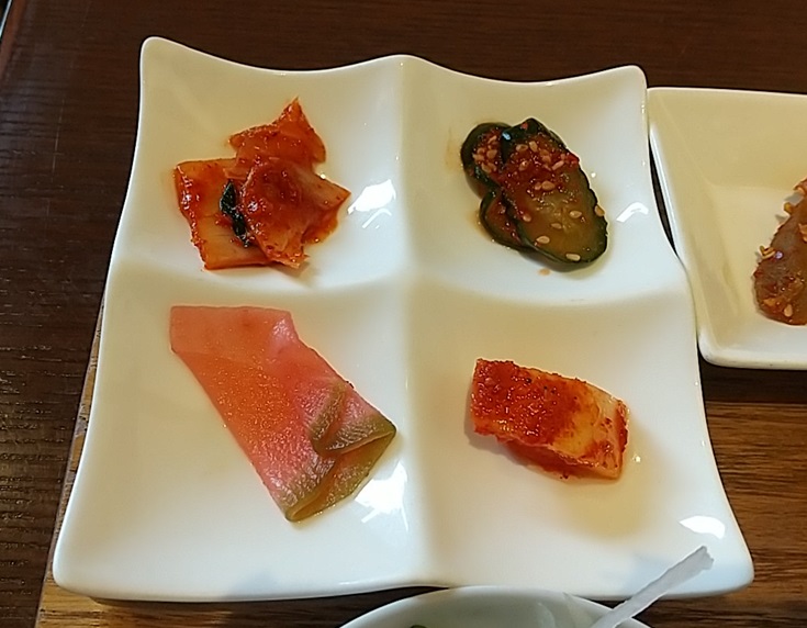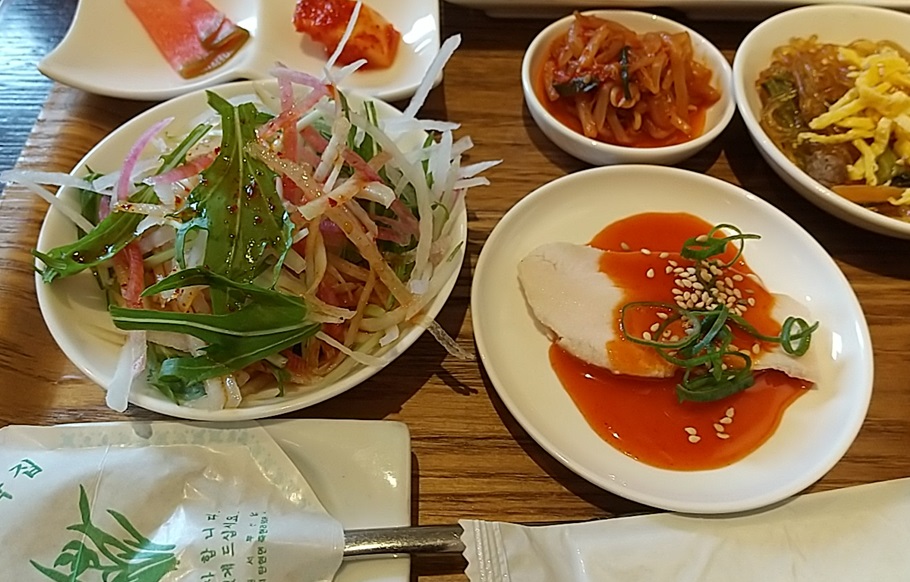 種類が多くて何から食べようかと迷ってしまいますが、サラダを手始めにチヂミやチャプチェに各種キムチは全て見た目通りに美味しいおかずでした。さすがはキムチの専門店らしく、キムチや珍味は間違いない味でした。ライスも欲しいところでしたが、サムゲタンスープがありますからね。