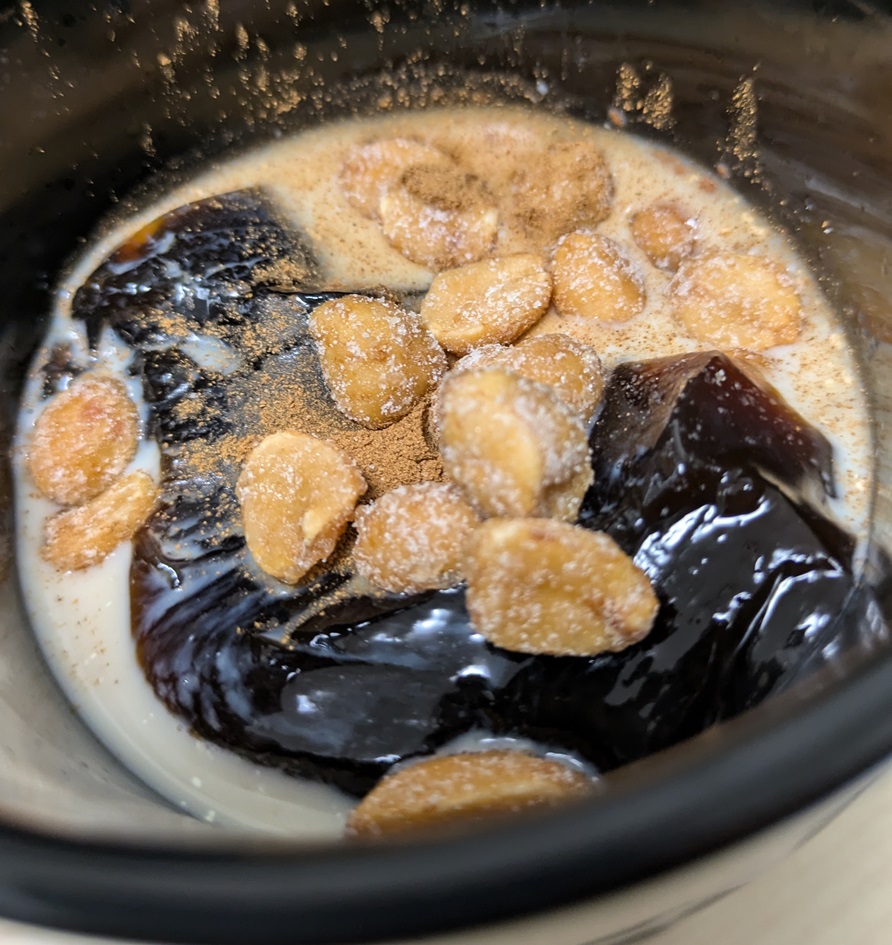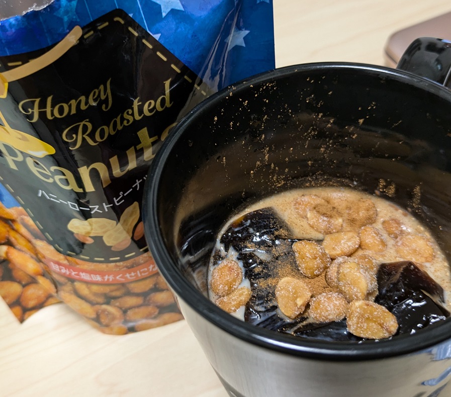 ちょっとコーヒー風味などが薄いかな…ということで、同じく「業務スーパー」で購入していた『ハニーローストピーナッツ』と『シナモン』を追加してみました。はちみつの甘みとピーナッツの香ばしさがアクセントになって、なかなか気に入りました。個人的には、そのまま食べるよりもアレンジして食べていきたいですね。