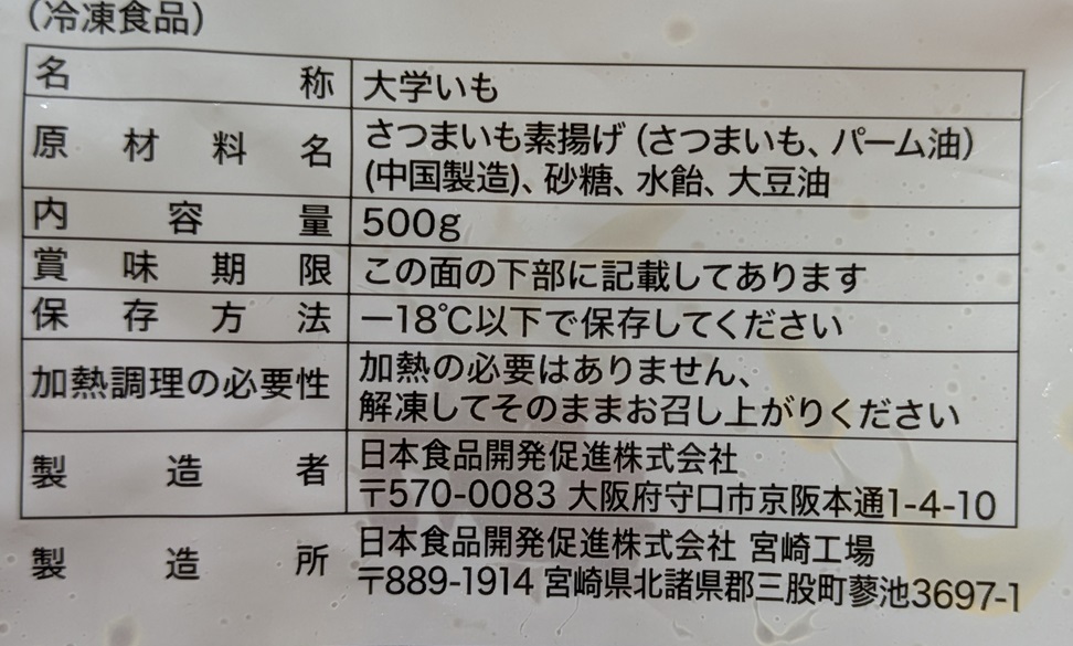 (スイーツ、さつまいも料理、中華ポテト、大学芋、冷凍食品、作り方、業務スーパー、成分表示、価格、内容量、クチコミ、感想)