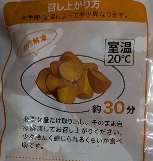 下画像の通り「自然解凍」で約30分経てば食べられるようです。めっちゃ簡単ですね!(^^)!。