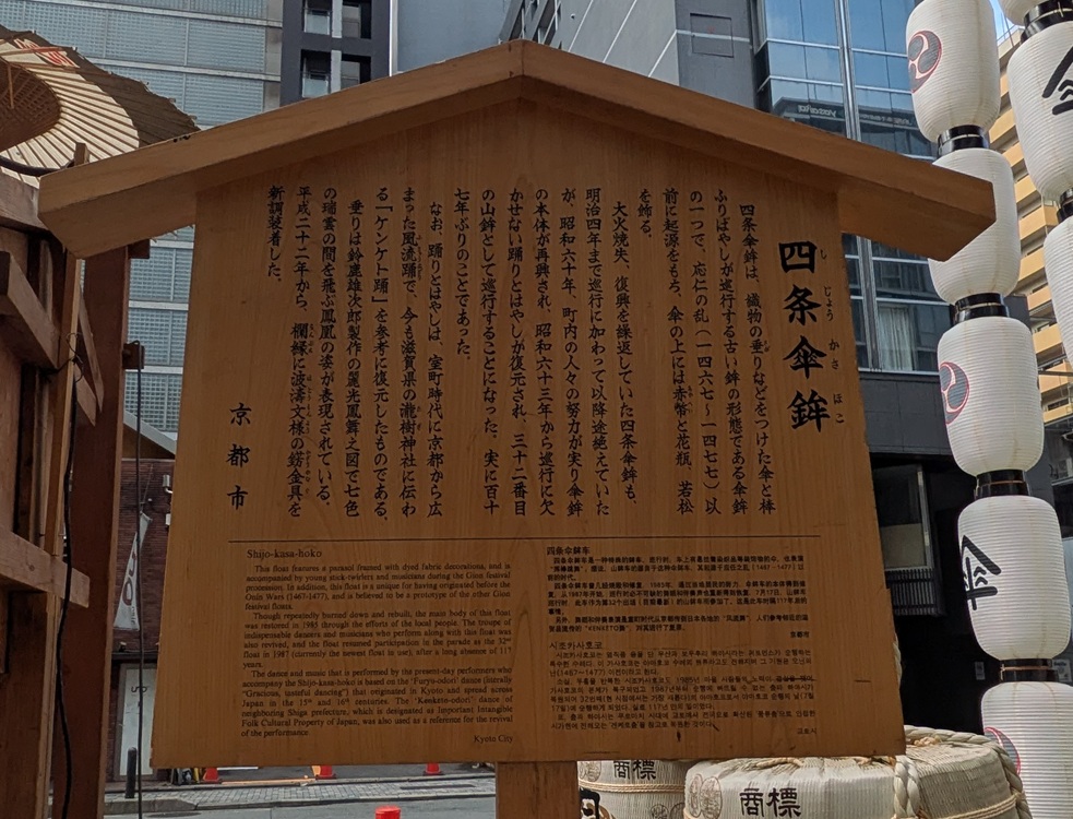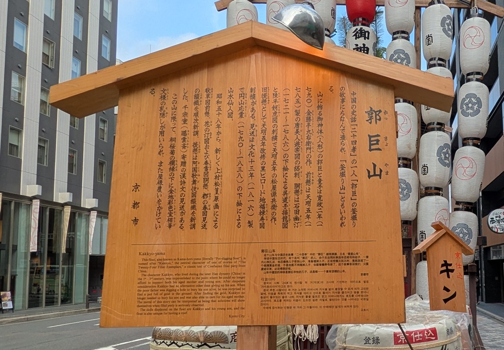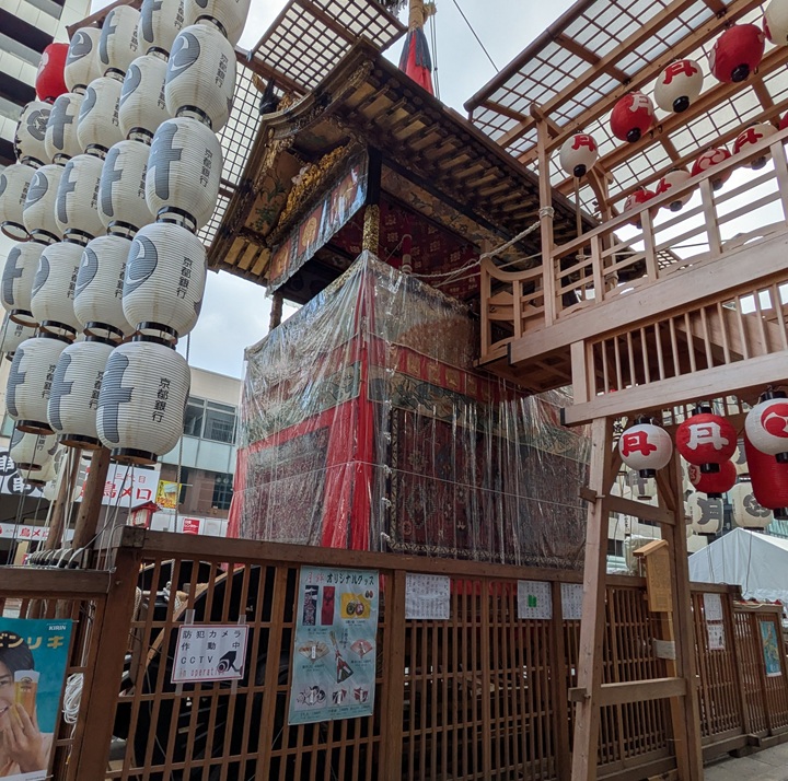 他にも、四条通りに沿ってぶらぶら歩いていると『郭巨山(かっきょやま)』『四条傘鉾(しじょうかさほこ)』にも出会いました。先の2基ほどの特徴はありませんが、それぞれ興味深い形状をしており、キレイに保存されているとおもいました。